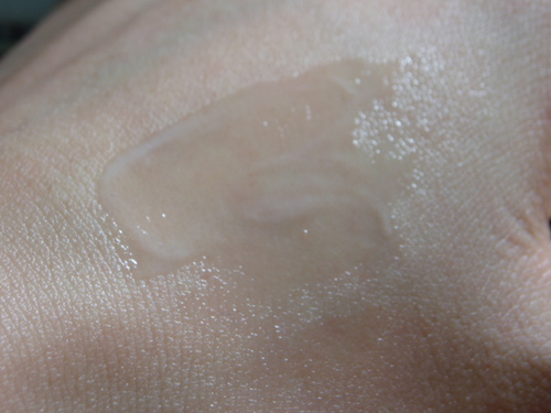推開後變成水狀 記得用量不能省,皮膚很乾的話一下子就吸收了,用量太少會沒效果喔!