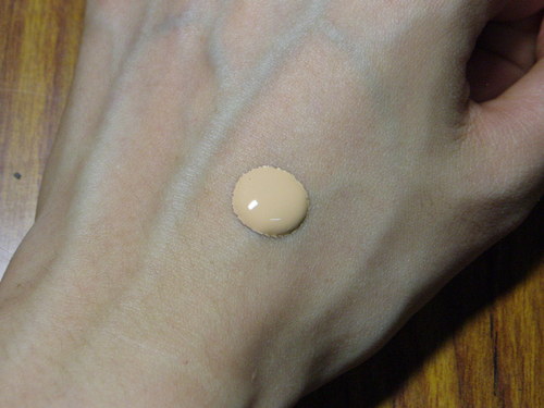 粉底液的壓頭不太好控制,圖中是按壓一下的量,拿來上全臉有點多,第一次用時把它全弄到臉上,臉變的很白,至少白了兩個色號吧!嚇死我了!